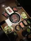 My daughter and I went and were really excited about the concept of grilling on the table (which was fun). The meat was disappointing - fatty and not cut very well so it was hard to navigate with only tongues, chopsticks, and the one fork I requested. Flavor of the meat wasn’t great either. Spring rolls, salad, and spicy cucumbers were good.