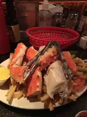 First off, this is CASH ONLY. It is a bar with some tables. Located under the steps of an apartment building. See the bartender when you walk in if you want a table. This is a VERY informal place, It is more of a local landmark. The King Crab Legs are huge. it was $37.00 for the legs and worh every cent! It is nice not to have to fight to find some crab like at other places. My friend could not finish all of hers because of the size of it. They are served with fries and a sucker. Yes a sucker. They have other seafood but get the King Crab Legs. Its a grugy place and you are in a basement but it's part ot the charm.
