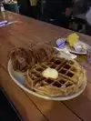 Delicious chicken and waffles!! The sides my husband had (mac and cheese, mashed potatoes) weren't that great but the fried chicken made up for it.