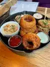 Had the onion rings - very large rings panko breaded - good. Cobb salad good, grilled chicken had nice flavor but a bit dry. chicken fried steak heavily breaded - crisp, but prefer a lighter breading. green beans and mashed good. White jalapeño cream gravy very good. Greg, our server was excellent. Hostess tried to initially seat us in the hotbox patio even though restaurant was empty, but willingly moved us to air conditioning!