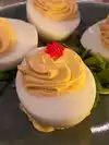 We hate a 1 pm reservation here before a matinee show on a Sunday. We were seated inside at a very small table. Our waitress Liz came over to get our drink orders. You use your phone to scan the QR code on the table to access the menu. We ordered two bloody marys which were very good and only $7 ea which is great for NYC. We decided to share 3 appetizers, the wings, deviled eggs and cerviche. They all arrived pretty quickly and look amazing. We had to remove the items from the table to make room for the food. The deviled eggs were very creamy. The cerviche was very small with just 6 shrimp with chips, but with a $10 price tag was ok. The wings had a dry rub on them and some kind of sauce drizzled over them in the kitchen. They were unlike any we have had before but were delicious. All in all, this was a good restaurant.