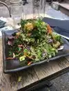 Kale and quinoa salad was very good. Added ahi tuna. Service was very good; great recommendations. Inside is tight. Outside is better, has heaters.