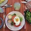 My wife and I didn't sit down for a full meal. They have a bakery/sandwich bar area for lunch and afternoons that we took advantage of. There were spots to charge my phone too. The restaurant had a clean, open look. The bar is large and the staff is friendly. Our to go food came quick and fast. I was so hungry at the time, I ate my heated bear claw fast. Coffee was good as well. We intend to go back to sample more on the menu.