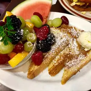 We had a lovely breakfast at Home Plate, I had the veggie omelette and my partner had the French toast with fruit. They were both delicious ! I would definitely come back if I ever return to San Fran. I would of given them a 5 star rating if they had a coffee machine, I can’t stand filtered coffee! But other than that I highly recommend. The service was also great.