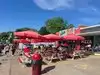 Wow margarita and a slice of meatball…fresh, fast, hot and yum. Always a long wait so we seized opportunity and grabbed it .they pour a whole line of gourmet soft drinks and they have misters…for the heat w picnic tables and umbrellas . Score . Delish!