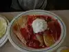 My wife and I popped in for a quick dinner after doing the hop on hop off night bus tour. I ordered the pancakes and my wife the crepes, both were bloody horrible. I ate less than a quarter of my meal and my wife ate less than half of hers. I ordered banana pancakes which were supposed to be topped with fresh banana and strawberries but were swimming in horrible sickly artificial strawberry syrup. The parts of the pancakes that weren't drenched in this terrible artificial syrup were that dry it wasn't funny. I wouldn't feed this muck to my dog. When we told the waitread she was very apologetic but said that there was nothing she could do about it.