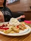 I ordered the red, white and blue pancakes. I waited a long time for my food and imagine the horror when I received soggy pancakes with rotten fruit on top. I called the waiter and told him my strawberries were brown He said ... So you don't want brown strawberries I said ... No He said...so what do you want me to do, change the strawberries. I said.... yes As I waited, everyone who left the kitchen gave me a dirty look, as if I did something wrong They are soooooo disgusting here. They returned the same pancakes (soggy) with fresh strawberries. I was speechless and unsatisfied but I didn't want to go back and forth with them. I eat the dry pancakes and threw away the wet and left, I tipped because I didn't think it is my server fault. but this was nasty.