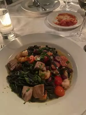 The main waiter and his two assistants were charming amidst a packed house. There was no rush. Allowed to enjoy our wine, then our courses arrived with appropriate gaps. Our lobster pasta dish was excellent with a great deal of lobster (no skimping). Delightful evening. Nice vibe.