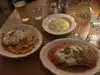 One of the 4 meals we ordered was really good but small portion, the others were average at best. The Alfredo sauce is very watered down. The atmosphere is a little loud with music and the waitress was barely whispering and wouldn’t speak up so we couldn’t hear a word she said. The tiramisu was very good