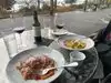 We stopped while sauntering with our dogs on the walkway in front of the restaurant for a glass of wine. Shared Bruschetta , Caesar salad, and pasta with Bolognese sauce and a bottle of Fundo recommended by the owner. Portions adequate to divide and prices were moderate. Great way to view the river with views of Mt Hood. Quality was super with freshly made pasta, anchovies and homemade croutons in the Caesar salad. Bread was delicious served with very high quality olive oil and balsamic vinegar reduction. Would recommend highly for an informal dinner.
