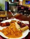 Pretty good combination of Indian dishes in the lunch buffet. Seems quite popular. We were part of a large group. Everyone seemed satisfied with their meal. It is good value for the price. There is a bar in the restaurant.