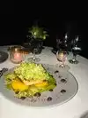 I live in Ca, I’m from CA blah blah....never been here before tonight and I jokingly said the drive way to it looks like a cult or commune lol. That being said, our rose was great, beef tartare was nice w a spicy twist. Scottish salmon delish and we cleaned the plate. Sashimi like fish was probably my least fave but still an interesting take. Roni our waitress was great. Table was super romantic and we got to listen to frogs call each other 🤪