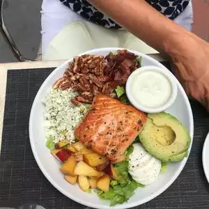Great restaurant with focused service and nice atmosphere. We came across this restaurant by coincidence and we were lucky. My wife had a spring Cobb salat (salat with salmon) while I had the inside bar burger. Both were weary tasty and the service was focused and friendly.