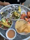 I had the BIG platter. Marinated shrimp, shrimp aguachile, rock fish ceviche, six different origin oysters. Ummm, so good. Sauces and horseradish and mignonette. Just the right amount to roll me out the door. This is the place to go.