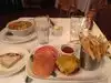 I had a very juicy cheeseburger my friend had tomato bisque, which she really liked. I tried the blueberry cobbler with ice cream for dessert. Another night we stopped in just for dessert and we had the Brioche Ice Cream Sandwich. We were staying at Hotel Wales next door so we just stopped in-never had a reservation, although we generally eat fairly early. The restaurant is very small, but that didn’t pose any problems for us since it was just the two of us. The fries and blueberry cobbler were not warm enough and I did send the cobbler back. It was still not to my liking but ate it anyway. I didn’t care for the cobbler- it was more like a thick blueberry soup with a little crust on top and not sweet enough for my taste. However, the Ice cream sandwich was excellent!! I would eat here again if staying close by but would not go out of my way to go there.