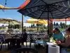 After a long drive, we found ourselves sitting on a floating dock rocking gently, with a beautiful marina view, soft breezes and strong drinks. Extremely relaxing. The food was good and the service friendly and efficient. We found it difficult to leave and hope to go back when we are again in the area.