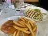 I had a salmon burger with a salad: everything was good. I also had a bite of a waffle: good but not so crispy.