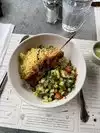 While shopping with my daughter in Soho, we wanted a good lunch away from all the shopping. We stumbled upon this spot and it was perfect! Casual atmosphere with a great menu. They also serve breakfast all day - I always LOVE that option, I had the chicken brochette with couscous and chopped salad. It was the perfect size. My daughter had the chicken schnitzel with mashed potatoes and chopped salad. Highly recommend.
