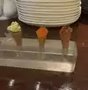 After a fantastic meal at Bazar Meat, we had to visit Jaleo at our hotel to sample more of Jose Andre's creations. This review is for the Sangria hour (happy hour) only. The Spanish Bramble & the Sangria were both watered down as expected, the red wine (Evodia) was sufficient. HH tapas were all small to tiny portions but were mostly solid. The chicken fritters was piping hot & creamy, the shredded chicken inside was moist & delish. The fried shrimp was very credible with light coat of batter. Salmon tartar cone with salmon roe, endive leafs filled with goat cheese & salmon roe.. all these bold flavors pairedwell with drinks. The liquid olive (Ferran Adria) was not part of the HH menu but we still got it. It was a fine example of Spanish reconstructive cuisine. Some of these same items can be found on the Bazar Meat tasting menu up the strip. We can attest the qualities were comparable. Overall tis a cool place to get a glimpse of Jose Andre's reconstructive cuisine without destruction of your budget