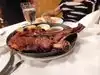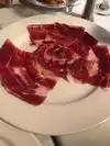 The ham was excellent very succulent and suave texture perfect flavor spot on. We had the buey 🐂 steak is absolutely outstanding brought to you rare on a 500 degree clay plate and you cook to temperature on your table mmm the crema Catalana was very good a great meal.