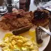 I had a really good basic breakfast of eggs, bacon and toast. I was satisfied and they filled our coffee quick. Looked like the staff was busy and working hard but they needed more people. F16's fly over every day and you can't hear when they do. Not a big deal and doesn't last too long but surprising.