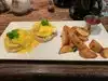 We went to see Bright Star at the Curran Theater and wanted someplace close for a quick dinner. We had a reservation but when we arrived they were only seating in the bar area (seemed to be some confusion about this later). We ordered several small plates to share. The fries with poutine and the deviled egg taster were both huge hits. We also has some regular dinner items, which came out quickly and hot. Our server was very helpful and prompt. It might have been nicer to sit in a booth, as we had hoped but in the end all was fine. The Niners win definitely helped! as did the large screen tv!
