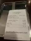 Having visited the London restaurant many times, we chose Joe Allen in New York for the first night of our trip. The waiting staff were very good and no faults there at all, however, we were disappointed that on the night we visited only a very limited menu was being offered, comprising of a few basic starters, steak and chips and a few sandwiches. Being used to Joe Allen’s extensive menu we were quite surprised, but at no point were we informed that the menu was restricted for some reason. At the time we booked - via Open Table - we weren’t told about any kitchen closures or such like. It seemed very strange. What we ordered was tasty but we would have liked more choice. If we had known that the menu was so limited, we probably wouldn’t have booked, to be honest. Back at the hotel I did some research and it seems that there might have been a kitchen renovation? I don’t know if that was true as I didn’t actually see this on the Joe Allen website - but that could explain the limited menu. As I say, our meal was nice but the menu lacked the usual Joe Allen pizazz and it would have been nice to have known about any restrictions when booking.