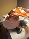 Saw this place blowing up on TikTok, so I gave in to the hype. Big mistake. Huge. I opened the box and was immediately greeted by what looked like a group project where no one communicated. Pepperoni sliding into mushrooms, red onions staging a walkout, and the crust? Charred like it lost a bet with the oven. This pizza tastes like it was made by someone who’s only seen pizza in theory. Grease levels were so high I considered checking my cholesterol before the first bite. The box was more soaked than my hopes and dreams after I realized I paid full price for this. That little plastic pizza table in the middle? MVP. Held the whole thing together emotionally while I crumbled. Final verdict: this pizza is all filter, no flavor. Looks good on camera, but so does a taxidermy fox. Save your money. Go buy a frozen one and lie to yourself. It’ll hurt less.