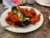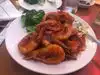 The evening we went it was packed with people outside. You get a number and there are chairs outside to sit on. The staff efficiently get people in and at a table, chances are you will be sitting with strangers. Strike-up a conversation, we did with a nice gent from Texas. Back to the food, we had Prawns in citrus and plum sauce shrimp and chicken. The Prawns were good but the sauce a bit bland. The plum sauce was better. The shrimp, prawns and chicken were all excellent - cooked just right.