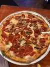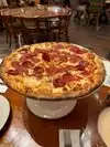 Nice to see the place decorated for Xmas. Places was super busy at 430 on a Friday so we sat at the bar till table was ready. Bartender was great. We order the garlic rolls which were great, house salad and. A large pepperoni & sausage pizza. Pizza by far was top 2 of the best pizza I have ever eaten. Service was on point. Only reason for the 4 stars was the bathrooms were disgusting. Have seen cleaner porter Potties at a summer concert at the end of they night. We mentioned it to the waitress and the staff attended to the women’s bathrooms. We will be back again