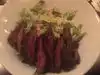 Before going to MSG to see Carrie Underwood we stopped at Juniper bar for dinner. The atmosphere was very inviting inside. We started with a glass of wine and I had a roasted beet salad that was delicious. My daughter had the arugula salad and enjoyed it just as much.My main course was short ribs with a demi glaze roasted young carrots and garlic mashed potatoes. It literally melted in my mouth/ despite the fact the beat salad was very big I ate everything on my dinner plate because it was so good. Waitress was very helpful and friendly. my daughter had the pizza and loved it too but wished she got the short ribs too. No room for dessert but would highly recamend this Restaurant to anyone wanting a good meal. our bill came to $73 and it was worth every penny.