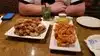 This is a place in Penn Station where you can sit down, have some food and drinks while you wait to catch your train. Food is not that memorable, for a $20 appetizer sampler you get kind of a weak selection. Rings and nachos were ok.