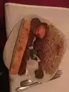 Very odd starter of pungent coriander sauce over potato. My partner's samosa type starter was fine. Then a salad with too much sauce on it. Fesenjan Chicken (type) okay but too much rice. Price a bit steep for two starters, two mains (entrees) and one coke