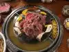 Not sure what to expect and not sure how to rate something we've never had before. There were four of us, two of whom had been here, hence knew what to order. We all shared the Beef Combo - marinated and braised ribs, brisket, and steaks. Also included was Beef Stew Soup,romaine lettuce salad, another salad, some veggies and an assortment of stuff surrounding the center fire pit - scrambled eggs and other sides. In a nutshell, the ribs were the best thing (crispy edges and tender inside) and the other meats weren't far behind. It was hard to enjoy some of the other items, but it was good to try it all. They give you small plates , metal chopsticks, a large spoon and will also give you a fork if requested. Knowing in advance about the long lines, we arrived on a Saturday around 5 pm, lucked out right away with a nearby parking space and only had about a 5-minute wait to be seated. Service was excellent, efficient and quickly moved you through the meal. We did not feel rushed at all, though. One at a time, the meat is placed on a grill on a little fire pit in the center of the table; the server comes back every few minutes to tend to the cooking and dishes it out when it's finished. The room is filled with a light haze from all the cooking and the aromas encourage your appetite. All in all, this was a very nice first experience, and certainly worth a repeat visit.
