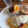 Food was absolutely delicious. I forgot what it was called but it was eggs over mediums with bacon and queso poured over top with tomato and avocado with an English muffin on bottom. It was so yummy. The potatoes were so good.. My two business partners seem to enjoy their meals as well. Every thing is farm to table. It taste like it was.. definitely can’t wait to go back..