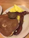 We went here for breakfast looking for pancakes and were not disappointed. They offer gluten free and vegan options, if that's something you're concerned about, but if not they have plenty of traditional options as well(read as: can get bacon). Reasonably priced and absolutely worth it! I'll be back!