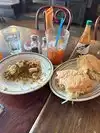 Fabulous beer selection says hubby. Sazerac was ok Jumbo soup was a hit, along with the mac and cheese side. Collard Greens side was a miss with not a lot of flavor and a strange ketchupy taste. Rice and beens side delicious Coleslaw nothing to write home about. Fried catfish was greasy and a C at best. We've been a few times and had better grub. Lots of vegan and veggie options, along with tons of meat choices.