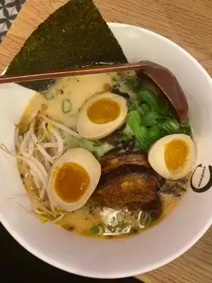Wasn't sure what to expect when we book this place, but I was very pleasantly surprised. Got the Kimchi Tan Tan ramen, my colleagues got the Koku and the spicy miso, we also ordered some gyoza. Everything was prepared quickly and well. The egg was perfectly cooked, the noodles the right hardness, and the broth was excellent. You can always tell a good broth by how much gets finished after the noodles are done, and we all left mostly dry bowls. I also like the ambiance -- casual and fun, with comic art on the walls and a mix of bar seating, high tops, and tables. The wait staff were attentive and quick. Will repeat if I'm in the area!