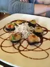 Had lunch here during a business meeting recently and sat outside on the patio on a nice Spring San Antonio day. I got a sushi roll and some soup and it was very good. I shared some calamari which was also very good with a nice cream sauce to dip. Service was excellent and fast. It is attached to the North Star Mall, but no mall distractions. Nice for lunch or dinner.