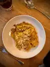 We were here for lunch and decided to just get a pasta with no starter. Both pastas were excellent. I got the tagliatelle bolognese bianco which was extremely flavorful. The pasta width was more like pappardelle which was no big deal. The meat was a combo of pork and veal I suspect. My wife ordered the tajarin carbonara with speck which also was excellent. We shared and they were both so good. Hard to recommend one over the other. Atmosphere is more trattoria in style. Service was excellent. Really enjoyed it! Service was friendly and attentive. Good value for the quality of the cooking.