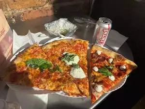 SOOOO disappointing. Absolutely NOT worth the hype, and certainly not worth the price. Good crust but barely any sauce, and the sauce was tastless at best, as was the burrata and that is apparently the most popular slice. So overrated. I've had tastier .99 cent pizza. Mamas too around the corner is 100 times better. Don't buy into the look of the ridiculous long lines. Tik tok made this popular and its not good! Never again!