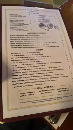 Really enjoyed going to L'Express this past weekend. The food, service and ambience were excellent. Highly recommend!