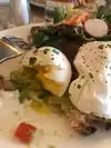 Came in after 2pm after seeing Santa at abc carpet. Quite loud inside, did t need to blare the music. Ordered avocado tot, was actually Guacamole on toast with 3 poached eggs. Seems a little weird for mexican food in a French bistro style restaurant. My wife and I ordered croque monsieur and madames... not what I expected. Had asked the food runner for mayo and mustard, it NEVER came. Don’t go on Sundays!!!