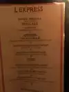 We visited L’Express Christmas Eve 2017 and found it a bustling place full of families and couples, young and old. Lots of talking and lots of hustling to and fro by the staff. Fun place. Oh, yeah, the food. Very good Martini, decent house Cabarnet. My wife and I shared a foie gras that was a bit too cold, but still ok. She pronounced her beef tartare very good, though she marked it down a bit because it did not have the traditional raw egg. Her octopus salad was good, although would have been better, she said, if it had been room temperature rather than cold. My monk fish was a c+. The accompanying potatoes, Brussels sprouts and sauce were good, but the fish itself was somewhat dry. I had a tarte tartin for dessert that was a treat, full of apples with a nice dollop of fresh cream. The wait staff was brisk and efficient. Although the restaurant was full we were not rushed and allowed t linger over coffee and wine.