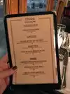 I loved de onion soup, realy similar the ones in Paris! Nice Wine list, good options for wine in Glasses Good staff! it is in a very nice area and the price is average!