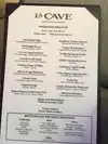 We had a nice evening at La Cave with good friends, food and waitstaff. The appetizers were our favorite. Lettuce cups with crab, short rib tacos, meatballs over polenta, and onion soup. We also shared a Caesar salad and sea bass that were good. The waitress was attentive to our needs and very pleasant. We enjoyed the ambience and the couch was very comfy after a long flight. The restaurant closed at 11 so don’t expect to stay too late.