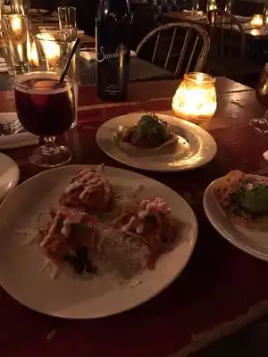 The ceviche. Is. Amazing. Had an excellent dinner here as part of a bachelorette party. Imagine taco bar meets speakeasy. Very trendy. Great food. Ask for a sparkler to come out with your round of shots.