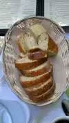 As you can see from other photos this is a restaurant with a lovely courtyard and location. It apparently is built as part of an old apartment building and three of the units have been repurposed for the establishment. We loved the ambience and large exposed beams, brick walls and quiet atmosphere. We came on Wednesday and it remained relatively quiet throughout our meal. Some people were enjoying the courtyard as the weather was good. With regard to slow service, yes it is extremely emotionally but our server was very friendly and perhaps you just have to sink yourself into the mindset of being in Europe when things are extremely slow-paced and there is no rush. For those who come and need to park, a couple of comments – Park on the side of the street where the restaurant is and it is angled parking. The parallel parking directly across the restaurant does not open until 6 PM – reserved for buses before then. Also there is a paraphernalia shop on the corner and we experienced a large gathering of people of which several asked us for money. Good if you are in a charitable mood, but if you find solicitations unpleasant worth remembering. The food itself was all right. Wife had eggplant pasta and I the chicken special made with artichokes. Bruschetta was highly uninteresting. However, I wouldn't say that I felt it was a highly savory or memorable culinary experience. I would echo others in noting that bread here is a real low light. It's dry, coarse and not even served with olive oil or butter to enhance any potential flavor.