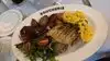 We had brunch and dinner here. Too different experiences, a little disappointed with brunch.. my own fault had checked breakfast menu but as was a weekend the menu was brunch. We had 2 omelette and the baked eggs ( baked eggs disappointed as it was 30 dollars for egg and soliders really. The interior here is worth the money alone, particularly at Christmas. Its absolutely stunning!! Our server was lovely a blonde Serbian lady, very helpful. We decided to come back for dinner our last day but hadn't booked in time. They still facilitated us at the bar and we had 3 different varieties or steaks . All excellent, the place was buzzing!! Unfortunately for us there was a group close by with 2 dogs who they were feeding from the table. I love animals but would have issues with hygene in a fine dining setting. As they left the large dog jumped on me and tried to take the steak from my plate....now staff were amazing and explained the lady had said it was a service dog ( I would be very surprised any service dog was behaving like this) the restaurant could not refuse the 2 animals entry. Anyway I got a free steak and a dessert and the loveliest staff who were so apologetic. I wouldn't let this put you off ....the food, the interior, the whole feel of the place ....wait until you see the steaks ( pics attached).. you will understand why the dogge wanted it so bad 😃