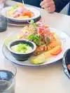 An explosion of flavors, exuberant cuisine! Even for those who don't usually eat seafood, the shrimp croquet I tried and liked! And the Lomo Jump is wonderful! Nigiri vegan also delicious, creamy with Latin touch!